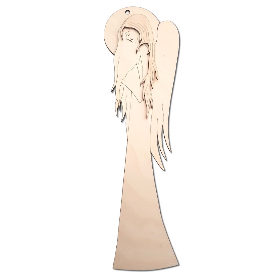 Anděl vyřezaný z březové překližky 3mm a vygravírovaní laserem. Andělé se skládají z několika dílů, které je potřeba nalepit na sebe (po nalakování, nabarvení, namoření apod.
