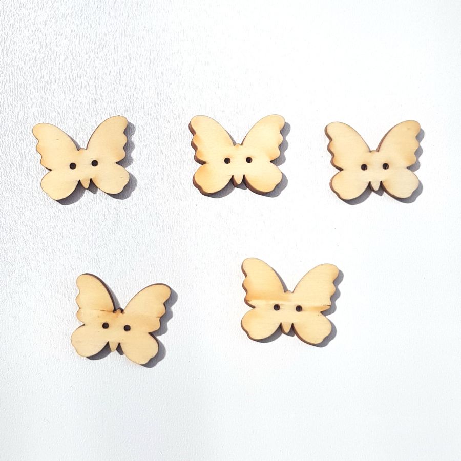 Knoflík dřevěný- motýl 2,8x2,3cm-5ks