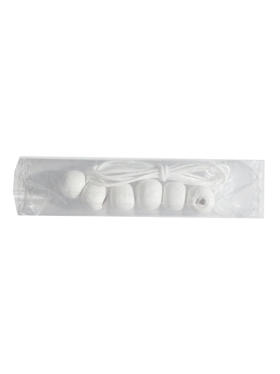 Balení obsahuje: 6kusů bílých korálků vel. 10mm a bílou šňůrku 2mm délky 75cm.