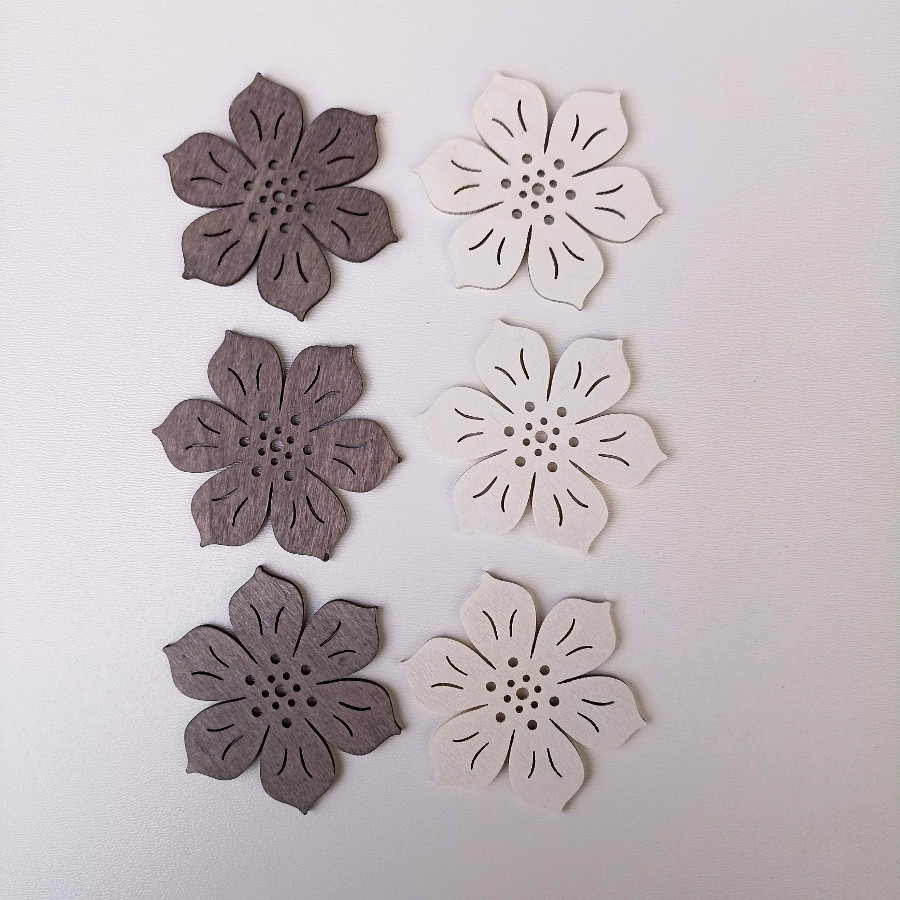 - Kytky šedé a bílé 6cm, 6ks