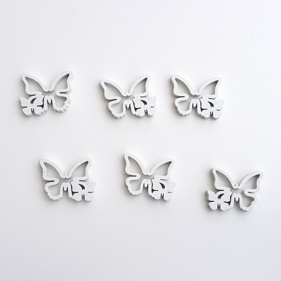 Motýl- dřevěný bílý 3,5x2cm 6ks . Vhodné k dekoraci.