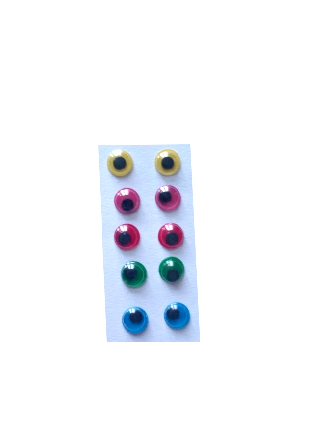 Oči plastové průměr 7mm - 5 párů (žluté, růžové, červené, modré a zelené)