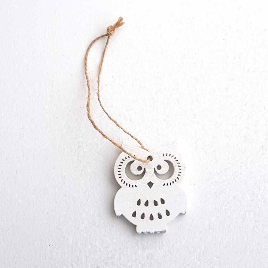 Sova dřevěná přírodní na zavěšení. Vhodná k dekoraci
