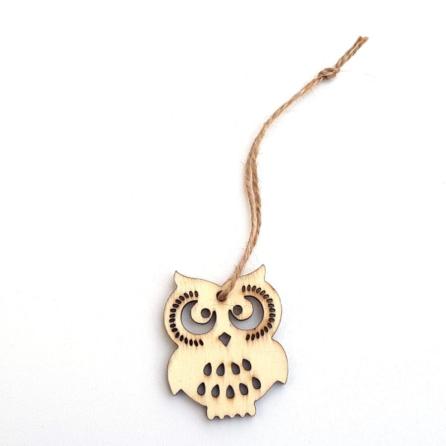 Sova dřevěná přírodní na zavěšení. Vhodná k dekoraci