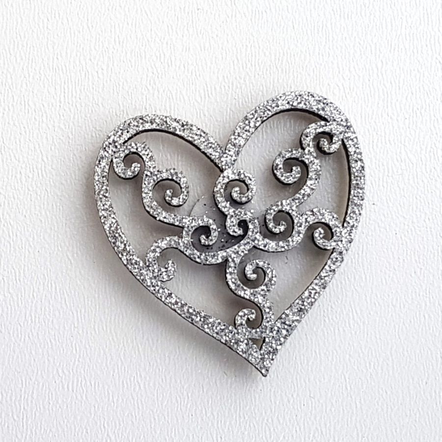 Srdce dřevěné stříbné 4cm-1ks