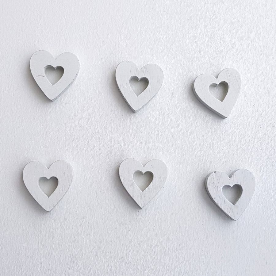 Srdíčka dřevěná bílá 2cm - 6ks