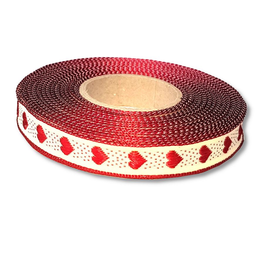 - Stuha plátnová s drátkem 15mm srdce tm na béžové 1m