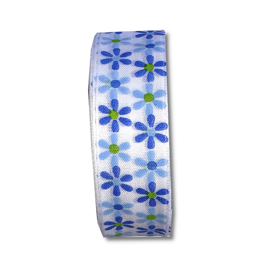 Stuha s drátkem modré kytky 25mm 1mSkladem13,00 Kč/ m10,74 Kč bez DPH
