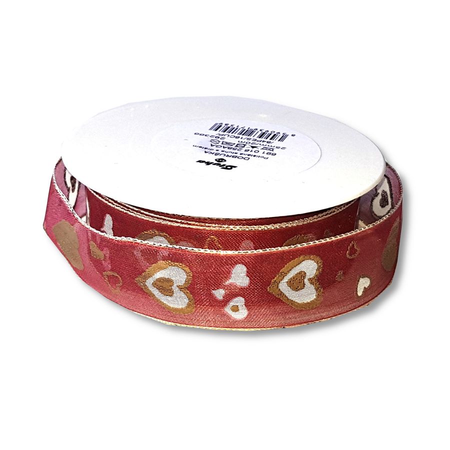 Stuha s drátkem srdce na bordo 25mm 1mSkladem5,00 Kč/ m4,13 Kč bez DPH