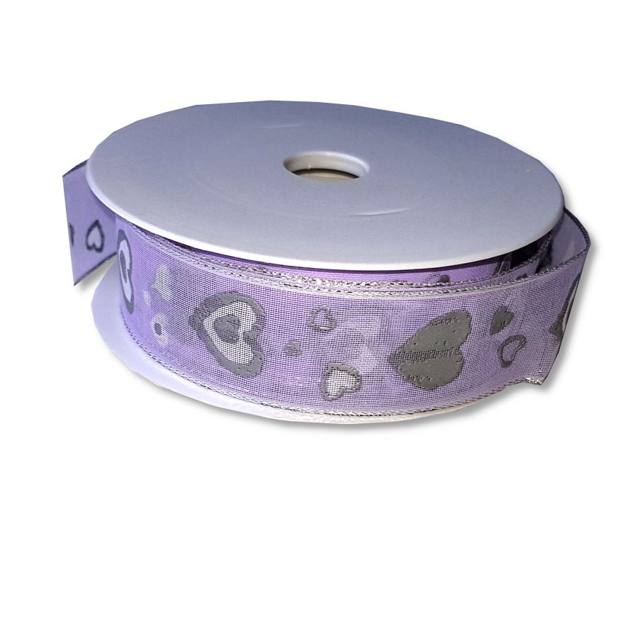 Stuha s drátkem srdce na fialové 25mm 1mSkladem5,00 Kč/ m4,13 Kč bez DPH