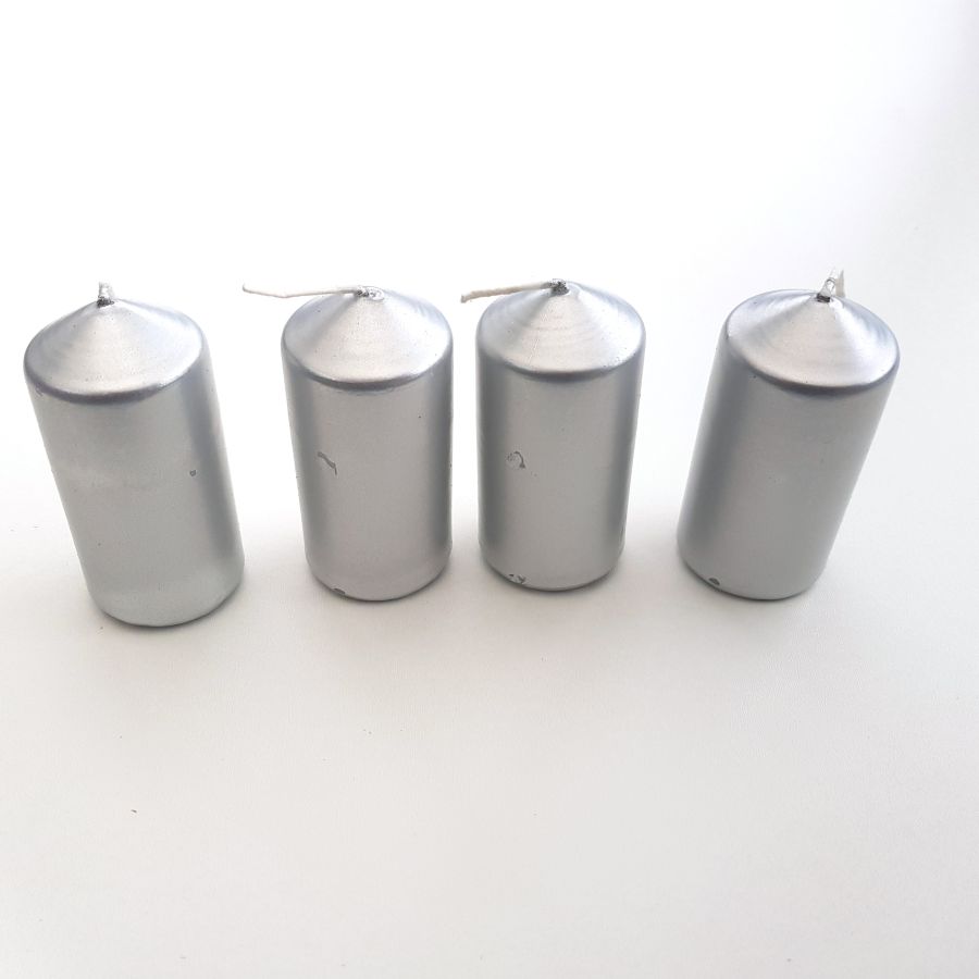 Svíčka adventní 40x80mm metalická stříbrná 4ks