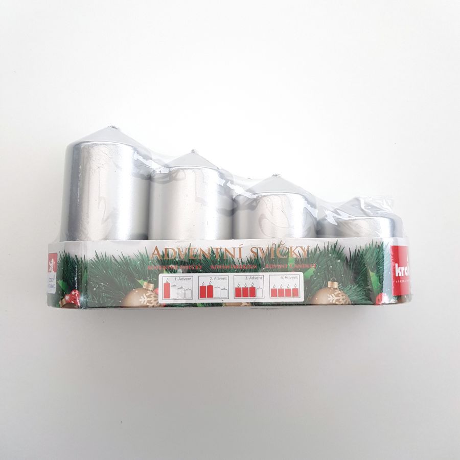 Svíčka adventní schody 50x60/75/90/105mm metalická stříbrná 4ksSkladem120,00 Kč/ ks99,17 Kč bez DPH