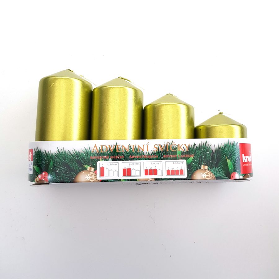 - Svíčka adventní schody 50x60/75/90/105mm metalická zelená 4ks