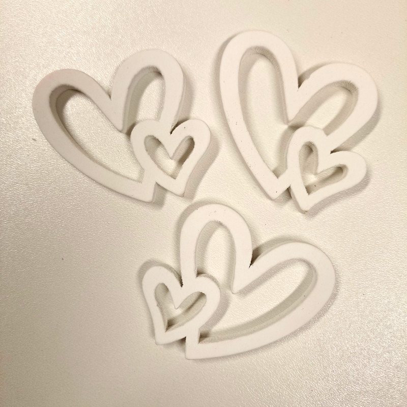 - Srdíčka dvojtá dřevěná bílá 4,5cm - 3ks