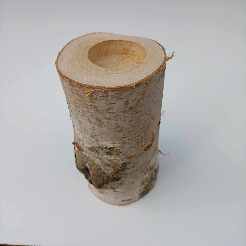 Svícen pařez z vyhloubenou dírou na čajovou svíčku. Povrchově neupravená.
